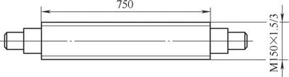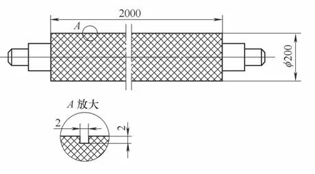 (1)加工大导程螺纹胶辊。它是一化工厂用的大型、大导程、多头螺纹胶辊,如图1所示。此胶辊的螺距为64mm,头数正、反各20,其螺纹导程为1 280mm,螺旋角为63.8°。加工螺纹时,采用风动砂轮做磨头,做一个可左右扳大螺旋角的夹具,将风动磨头安装在夹具中,再安装在车床方刀台上。采用动力头减速,使C630车床主轴最低转速从14r/min减到2r/min。安装好挂轮和螺纹分头用的齿轮分度盘,将工件安装在车床两顶尖上,一次走刀磨好一条螺旋槽。磨好一个方向20条螺旋槽后,将砂轮反向扳好螺旋角,再将另一方向的20条螺旋槽依次磨好。
