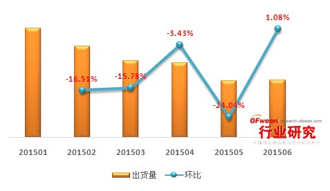2015年上半年,国内平板方案每月整体出货量出现明显下滑,出货量由1月份的539万台下滑到6月份的281万台,降幅达47.9%。