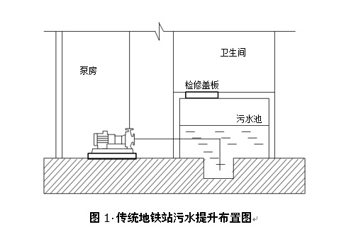 国内地铁车站传统的污水提升系统一般由排水管道、污水池及污水泵组成,该系统有技术成熟、运营管理经验丰富、设备初期投资较小等方面的优点,但是随着人们对乘车环境要求的提高和轨道交通工程建设的快速发展,传统污水提升方式暴露了出了一些问题: