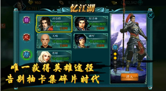 忆江湖是《绝世武神》手游的创新型玩法,游戏在原著背景故事的基础上,根据每位英雄的人物设定及性格特点设置了不同的番外篇,在进行任务的同时,还可以了解英雄的趣闻轶事,不再只做一个看客,而是真正的去体验他们的前世今生。并且通过忆江湖系统做任务还可以免费获得所有英雄!玩家不再需要抽卡集碎片那么坑爹的方式来获取英雄了。