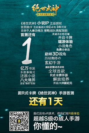 由知名网络小说改编,备受瞩目的R式卡牌《绝世武神》手游,明日即将开启安卓首测。除了高度还原小说剧情、极致唯美的人设画风、炫酷霸气的战斗画面,更凭借首创3R理念、6大革新玩法,吸引无数玩家目光。伴随本次首测开启,更云集了一众美女coser香艳出镜,海量艳照争相曝光,快来一饱眼福吧!
