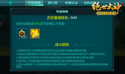 秉持着这公平公开的原则,《绝世武神》手游的竞技场系统在玩家战队等级达到14级时开启,此时玩家已拥有相对成熟的战队布局,能够充分发挥出个人的战略能力。竞技场是以战力排名为依据进行竞争切磋的,所以不用担心被大R玩家们血虐,你所遇到的对手都是和你战力不相上下的玩家,一决雌雄就看谁的操作更好,运气够佳啦!而获取积分可以提升自身排名,挑战失败也不会扣除积分,名次越高越能获取丰厚的游戏奖励哦~