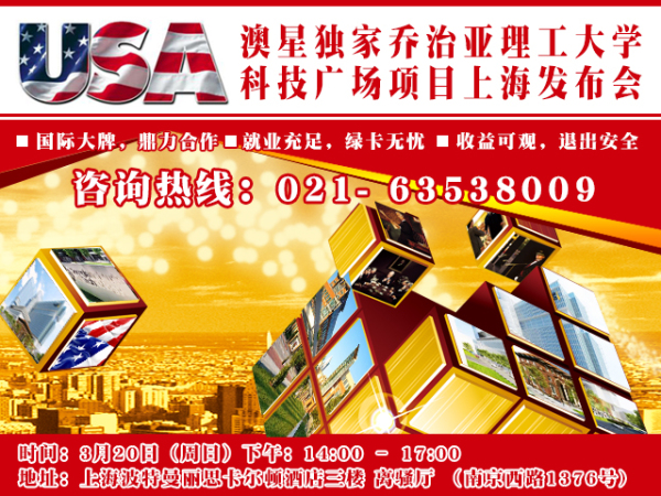 ? ? ? 下午14:00,美国波特曼设计律师事务所董事?Lell Barnes先生将莅临现场,发布“美国乔治亚理工大学科技广场项目”。该项目由乔治亚理工大学?(GIT)?主导开发,是多功能科技广场扩建项目。该校邀请波特曼集团担纲建筑开发商,携手知名律师事务所Miller Mayer,共同打造亚特兰大的高科技产业基地。此科技广场位于乔治亚州亚特兰大市的Midtown街区,开发总面积达927,000平方英尺,总投资约为2.48?亿美元,欲募集?5,000?万美元的?EB5资金。活动当日现场签约客户均可获得访美机票2张!?现场签约,还有机会赢得Iphone手机、Ipad、Iwatch或现金奖等惊喜,名额有限,仅限前十位!