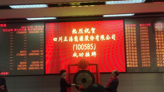 据悉,四川正浩能源股份有限公司于2015年12月30日正式在上海股权托管交易中心的中小企业股份转让系统挂牌上市,股份代码为100585,成为中国主板市场煤炭行业38家上市公司以外,第一家在上股交E板上市的能源煤炭行业股票。