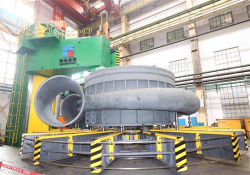 6月28日,哈电集团哈尔滨电机厂有限责任公司自主研制的阳江抽水蓄能机组核心部件——首台座环蜗壳成功发运,标志着国内单机容量最大的400兆瓦、700米超高水头段的抽水蓄能机组研制取得了阶段性胜利,为后续产品的顺利制造提供了宝贵的经验。