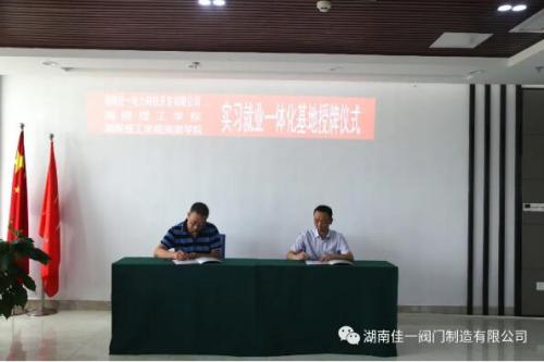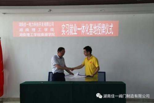 2020年7月2日上午,湖南佳一电力科技开发有限公司、湖南理工学院、湖南理工学院南湖学院实习就业一体化基地授牌仪式在湖南佳一电力科技开发有限公司举行。