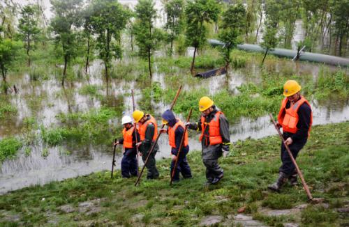 方大九钢坚持早部署、早安排、早落实,各项基本物资储备、防汛演练等工作在前期已全部落实到位。随着主汛期的到来,企业进一步抓好防汛抢险能力提升,6月15日~16日,方大九钢组织30名基干民兵、预备役抗洪抢险骨干在湖口县舜德乡皂湖水域开展冲锋舟集训,顺利完成了离靠岸、水上救援、物资转运等训练科目,进一步提升防汛应急救援能力;强化汛期巡堤机制,成立公司巡堤组,24小时三班对天灯堤江铜码头至公司东区排涝站地段以及牛脚芜堤九江钢铁东、西区交界处泄洪渠地段等区域进行堤岸巡视,掌握实时汛情、确保讯息畅通;展开防汛应急工作检查,组织对公司内部各单位防汛防内涝预案制定及更新状况、设施运行状况、人员培训及掌握程度状况、堤岸巡视工作执行情况进行全面检查,做到以备战状态随时迎接洪涝挑战;加强防汛物资储备,6月底,在长江水位上涨至18米时,企业第一时间启动生产现场防汛沙袋储备工作,4天之内完成10万包防汛沙包装袋工作;强化生产组织管理,做好汛期物资保供和产品发运工作,确保生产经营稳定运行;积极为地方防汛抗洪作贡献,7月6日,方大九钢企业所在地湖口工业园沿江大道地势最低处金元莱公司路段出现水情即将没过路面险情,方大九钢按湖口县应急管理局统一部署,派遣50余名退伍军人赶赴现场进行抢险,冒雨筑起了一条200余米长的防洪堤坝,及时了消除地方险情。