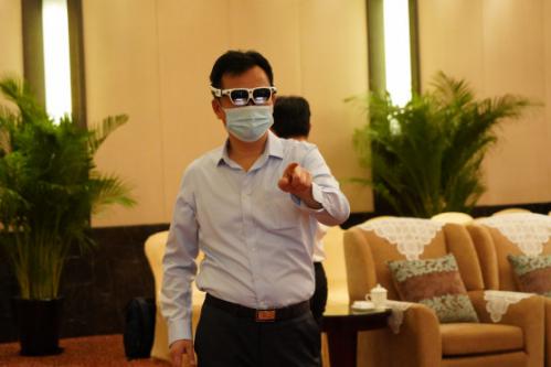 图:孙立为江西副省长吴忠琼介绍影创MR眼镜JIMO