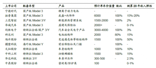 图1:特斯拉主要国产供应商收入弹性