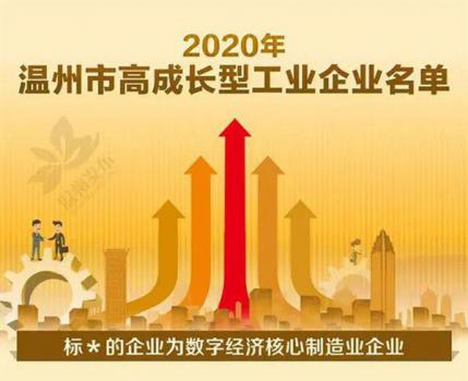 2020年温州市领军型工业企业、高成长型工业企业名单日前公布。