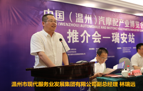 出席本次推介会的嘉宾,中国商业联合会市场委主任骆汉平、温州市经济和信息局总工程师张建东、浙江省汽摩配行业商会代表瑞立集团执行总经理余锦瑞、温州市现代服务业发展集团有限公司副总经理林瑞远、温州市汽摩配行业协会高级顾问蔡永旺、瑞安市经济和信息化局副局长王辉以及商协会代表、企业代表、温商代表、新闻媒体等70余人。
