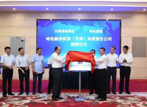 图二为哈电融资租赁(天津)有限责任公司揭牌仪式在天津港保税区举行