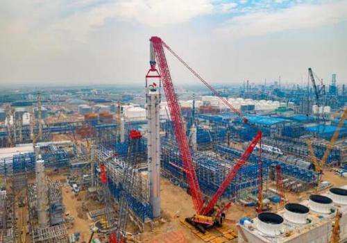 7月15日,山东寿光,鲁清石化项目现场,由三一重工研发制造、全球最大4000吨履带起重机SCC40000A,顺利完成了4号“1500吨级”丙烯塔吊装。
