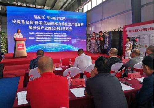 7月18日,宁夏首台套/首条无碱枸杞自动化生产线投产暨扶贫产业融合项目发布会在宁夏中卫市举行,活动以“无碱枸杞 红满中国”为主题,力促宁夏枸杞产业链快速升级,颠覆传统的枸杞制干工艺,提高了产品的附加值,开创了宁夏枸杞的无碱时代。