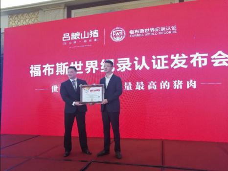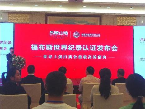 “世界上蛋白质含量最高的猪肉”,哪里有,山西交口有,2020年7月21日,福布斯为吕粮山猪颁发世界纪录认证发布会太原举行。