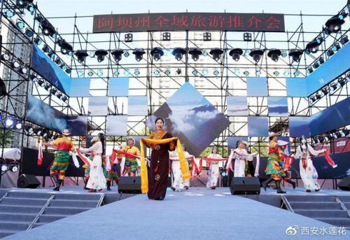 西安是十三朝古都,是古丝路的起点,西北交通枢纽,也是阿坝州旅游重要客源地市场。阿坝羌族藏族自治州旅游资源丰富多彩,有熊猫家园,净土阿坝之美誉。大唐西市广场推介活动现场40余幅阿坝州精美摄影作品展吸引了众多游客驻足观看。阿坝州民族歌舞团带来的《雪山高原的祝福》、《牧羊小曲》、《串铃声声》、《山歌》、《羊角花开》、《麦洼锅庄》特色藏羌节目。西安市秦韵艺术团演出的《送你一个长安》、《桃花念》共同给现场观众奉上一场文化饕餮盛宴,极大的丰富了两地文化交流活动,有力推动了西安和阿坝的文化交流合作和健康发展。