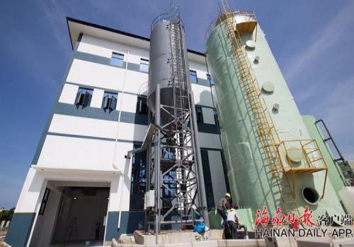 7月30日,在三亚市污泥处理处置项目扩建工程荔枝沟项目一期工地,施工人员正在进行收尾施工。