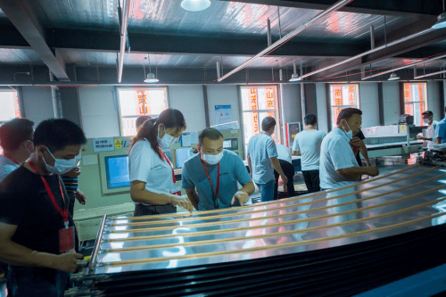 在清洁能源行业耕耘近二十年的宏力天扬,今日以全新形象迎接四海宾朋。28日上午,与会嘉宾首先参观了宏力天扬新厂区。宏力天扬公司占地面积20000平方米,生产厂房13000平方米,新生产厂区35000平方米,拥有先进的热水器生产线两条,集热器流水线两条,光伏生产车间,拥有分体式太阳能热水器年产量20万台(套)的生产能力,年销售额突破3亿元。