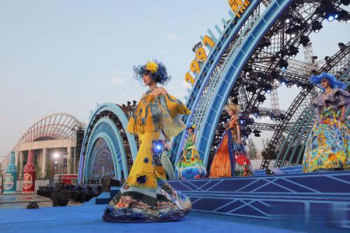 啤酒文化时装秀上,模特展示啤酒主题华服
