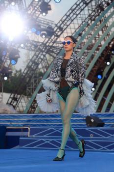 本次时装秀主要展现潮牌时装秀,形象创意秀,啤酒女郎秀,时尚比基尼四个服装系列。“这次在金沙滩啤酒城举办的时装秀,我们主要以海洋、蓝天、夜晚等自然景观为设计灵感,运用蓝色、黑色为主色调,以钉珠、褶皱、雪纺、泡泡纱为主要设计创作元素。”陈闻向记者介绍道,其中潮牌时装秀以涂鸦艺术为设计灵感,将艺术之美融入传统牛仔面料。形象创意秀以海洋为设计灵感,以数码直喷结合印花折褶、烫金的面料工艺,体现青岛的啤酒狂欢。啤酒女郎秀以啤酒文化为设计灵感,结合世界不同地域特色,用艺术的形式展现啤酒文化与各国特色元素。时尚比基尼系列以绚丽多姿、淡淡的朋克风格来展现比基尼、音乐、沙滩、啤酒的融合与创新。