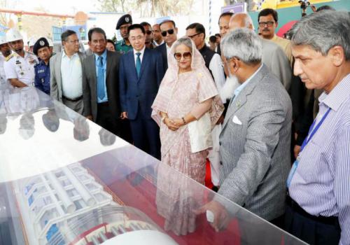 (孟加拉国总理谢赫哈西娜出席盾构始发仪式。孟加拉国信息部供图)