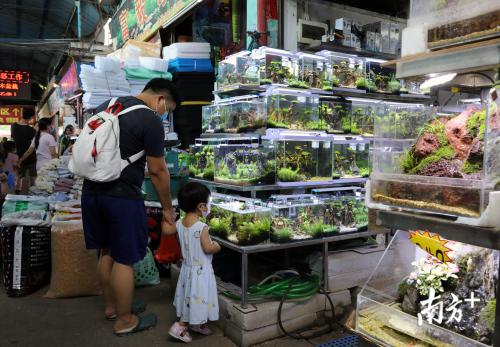清晨6时,阳光尚在地平线上慵懒徘徊,越和市场熙熙攘攘的一天早已开启。水族店主拉开铁门,一缸缸花色锦鲤叠架而起;三方档也开了张,档主们站在漆黑狭窄的过道上打扫铺位。这里是全国最大的花鸟鱼艺市场,20年如一日唤醒这座老城的清晨。