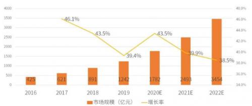 2016年至2019年,中国钢铁电商市场规模增长近2倍,从425亿元增至1242亿元。据艾媒咨询分析预测,未来市场份额还将不断提升,预计2020年达到1782亿元,并且未来三年增长率将保持在38%以上。