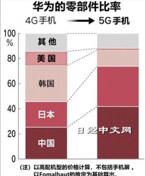 据统计华为在Mate30 5G版中,中国产零部件的使用比例为41.8%,比美国制裁前上市的旧机型4G版提高了整整16.5个百分点。与此同时,在4G版中占比达到11.2%的美国零部件只剩下玻璃壳等极少部分,占总体的1.5%,几近于消失。