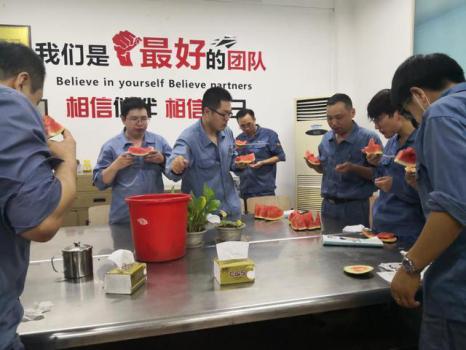 8月7日,时值“立秋”。中冶宝钢重机分公司利用午休时间,举行了一场别开生面的“啃秋”活动。以西瓜的清凉慰问奋战在高温一线的员工,为第十三届“中冶重机杯”劳动竞赛加油鼓劲。