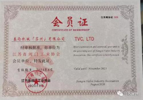 8月6日,由美国华侨顾德明创办的泰伦机械(苏州)办理手续,正式加入江苏省阀门工业协会,以此成为江苏省阀协新的一员。至目前江苏省阀协已有298家会员单位。