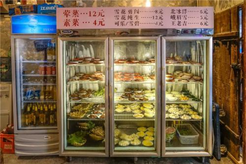 老街环境虽然看起是苍蝇馆子,但对食材却极为看重。老街称盘麻辣烫每日采购最新鲜的食材,处理干净之后用瓷盘装好放在冷藏室里新鲜度爆棚,仿佛整个菜柜都在呼吸,让人迫不及待地想要煮下锅。荤菜12块一份,素菜4块一份,想吃啥子随便拿(小编整了满满两盘,也才几十块钱)菜品新鲜,价格亲民,真正实现了麻辣烫自由!