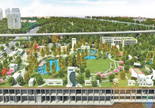 据了解,地上公园包括“一环五园”,即一条环形健身跑道,以及入口迎宾园、休闲娱乐园、体育运动园、湿地科普展示园、阳光活动园。记者在设计图上看到,公园内有球场、栈道、花田、湿地景观等。