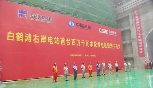 据了解,白鹤滩水电站位于四川省宁南县和云南省巧家县交界处,矗立于金沙江下游干流河段上,是目前在建的世界最大水电工程。电站总装机容量1600万千瓦,电站左、右岸共安装16台当今世界单机容量最大的 100万千瓦机组,右岸电站8台机组全部由哈电集团电机公司承制。电站首批机组计划于2021年7月1日前投产发电。电站建成后,年平均发电量将达624.43亿度,同时在防洪、拦沙等方面综合效益显著,且节能减排效益极其显著,是世界级的“超级工程”。