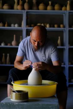章老师笑称很多人都觉得瓯窑的瓷器师傅只是一个做陶瓷的人。其实想要成为一名合格的瓯窑手艺传承人,不是件简单的事情。挖泥土需要体力;调配烧制瓯窑的釉水需要懂得化学配比;拉坯的时候,需要运用到美学,才能做出打动人心的瓷形;修坯的时候需要在内心对形状有着精确的把控,加减乘除要得心应手;而最终烧窑的时候,最需要的就是懂得物理;平时经常还要去瓯窑遗址走走看看,又跟考古学挂钩。可以说瓯窑的瓷器制作者是集卓绝的智慧和强健的体魄与一身。