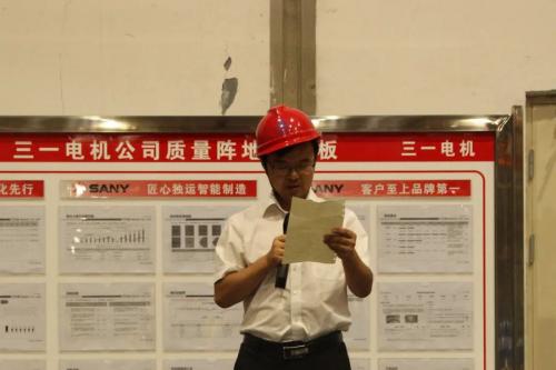 随后电机公司研究院院长杨强先生、工艺所所长古蕊先生、质保部部长于国卿先生先后代表本部门发表应战宣言,为打赢这场战役各部门应各司其职,通力协作,并带领各自部门成员高喊会战口号。