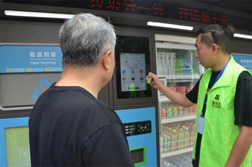 一进馨语星苑小区,干净整洁的广场上两台刚刚投放使用的智能垃圾箱在小区内格外醒目。据了解,小区投放的新型智能垃圾箱有智能称重、智能兑换、智能监控、满溢提醒等多种功能。用户可通过IC卡、APP小程序等形式进行系统登陆,然后在屏幕上选择不同的分类,如投放纸张、塑料、金属、玻璃、过期药品和有害垃圾等,按动分类键,垃圾箱门自动打开,将打包好的塑料、纸张等可回收物投入相应的投放口,自动称重后,关闭箱门,即完成投放,生成积分。同时,箱体上还用图标和文字标明了哪些垃圾应该投放到哪个回收箱,让人一目了然。