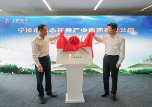 宁波市副市长陈炳荣与宁波市发改委主任张文杰为宁波市生态环保产业集团成立揭牌