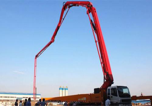 它是利用压力将混凝土沿管道连续输送的机械。由泵体和输送管组成。泵体装在汽车底盘上,再装备可伸缩或屈折的布料杆,就组成泵车。