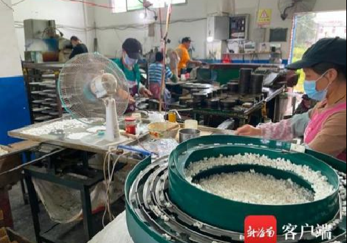 当地居民在琅塘镇一家电子陶瓷厂内工作。记者 张宏波 摄