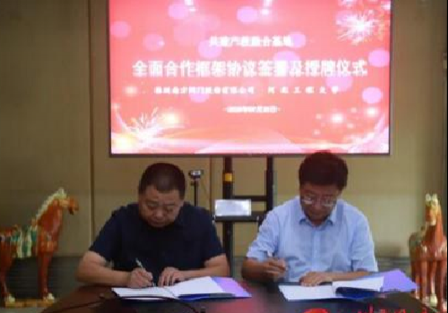 ▲河北工程大学副校长何立新(右)与南方阀门董事长黄靖签订全面合作框架协议。通讯员 供图
