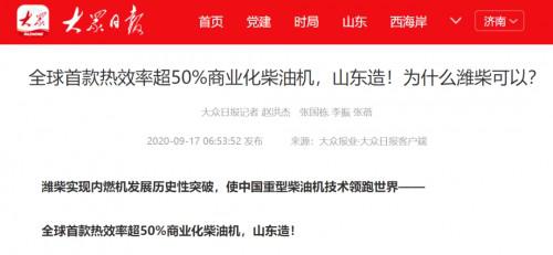 《全球首款热效率超50%商业化柴油机,山东造!为什么潍柴可以?》,来源:大众日报
