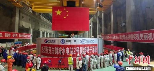 白鹤滩水电站2号机组转子吊装成功。东方电机 供图