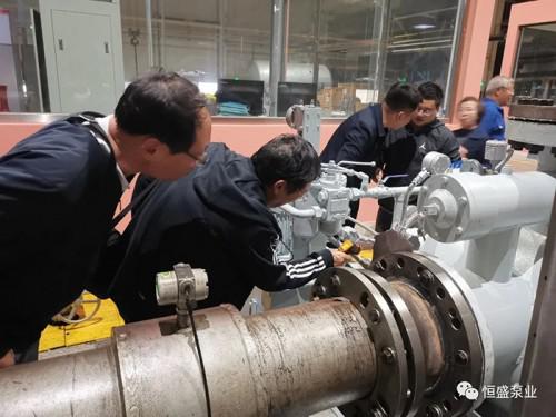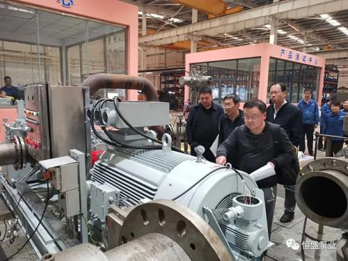 近日,海上平台项目最终用户,设备处、设计院及海洋厂相关专家组莅临河北恒盛泵业指导验收工作,公司市场开发部、技术部及生产部等相关领导陪同参与项目的验收,并召开项目验收会议,会议上公司领导对项目完工情况进行了详细汇报,向专家组展示了原油外输泵撬块各性能试验指标,及相关的完工资料,专家组认真进行审核。