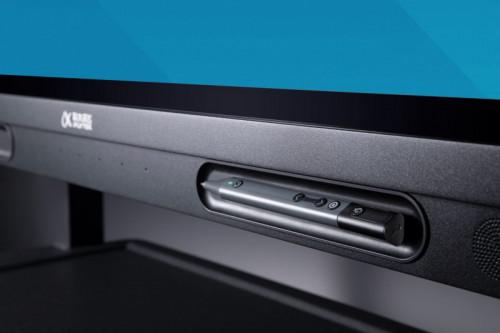 为了方便老师的移动教学,在这方面,讯飞智慧窗还配置了一支A.I.智能教学笔。可用以开展远场教学。具体到教学情境中的表现是,老师走到学生身边互动时,可通过发出语音指令的方式,调动屏幕做出相应动作,如调取课本、翻页、打开文件等,更加符合教师教学习惯,便于和学生的互动、交流。