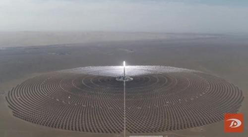 首航高科敦煌100MW熔盐塔式光热电站位于敦煌市光电产业园区,是国家首批光热发电示范电站之一,该项目于2018年12月28日并网发电,配置11小时熔盐储热系统,可24小时连续发电,设计年发电量达3.9亿度,每年可减排二氧化碳35万吨,释放相当于1万亩森林的环保效益。(邱 亮)