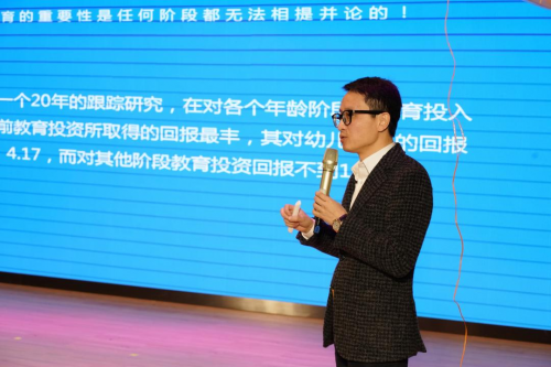 (创世纪教育集团总裁杨杰先生进行“再忙也要做个好爸爸”话题分享)