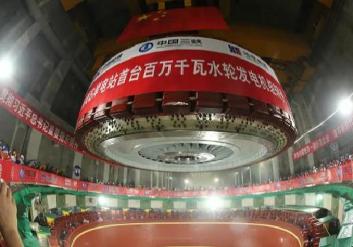 ▲2020年9月9日?哈电电机研制的首台白鹤滩百万千瓦机组转子吊装成功