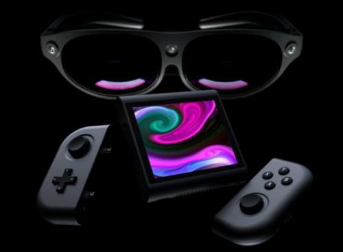 「鸿鹄」MR眼镜由影创与PhotonLens联合设计,兼具科技感与时尚感,一改以往MR眼镜的笨重形象。得益于分体式的设计,「鸿鹄」的眼镜主体部分更加轻薄,重量仅85克,而计算单元结合两个磁吸式6DoF手柄可以拼合成掌机的模样,其中单个手柄重量仅仅42克,除了易于携带,还大大增强了实用性和可玩性,可谓「外功」出色。