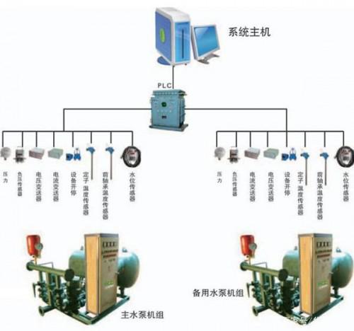 矿用泵房自动化系统包括地面监控中心和泵房水泵集控中心两部分组成。地面监控中心配置监控两台监控主机,一主一备,可在一台故障时另一台正常工作。监控主机主要负责采集、存储、查询和统计分析泵房现场监控子系统运行数据、曲线、操作记录等信息,远程操作控制排水设备的运行。泵房水泵集控中心负责泵房排水设备状态参数、供电设备运行状态、水仓水位等数据的显示,可以远程控制水泵和阀门以及其他设备的开停,并通过网络对外发布泵房运行状态数据。