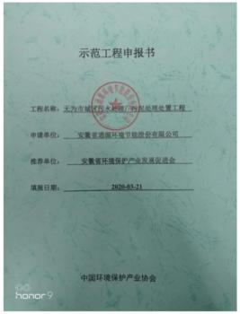 通源环境于2020年4月提交了无为市城区污水处理厂污泥处理处置工程申请示范工程的电子申报书,5月提交了纸质版申报材料。2020年9月中国环保产业协会组织行业专家对提交材料进行审查,通过了预审。